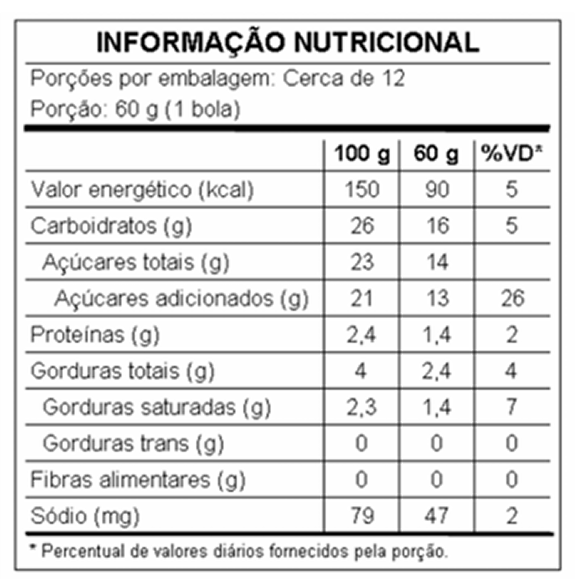 Ingr.: Água, açúcar, composto lácteo, leite integral em pó, recheio (açúcar, água, xarope de glucose, amido, (Agrobacterium tumefaciens, Streptomyces viridochromogenes, Arabidopsis Thaliana, Bacillus Thuringiensis, Zea mays, Sphingobium herbicidovorans, Discosoma sp., Aspergillus niger)), morango, acidulante INS 330, corantes INS123, 150d, 129 e INS 110 e regulador de acidez INS 297, xarope de glucose, agente de textura (maltodextrina, gordura vegetal, caseinato, emulsificantes INS 477 e 471, estabilizante INS 450iii), corantes amarelo tartrazina (IN 102) e INS 110, aromatizante, emulsificantes INS 471, 460 e 477 e estabilizantes INS 412, 466, 415 e 407.